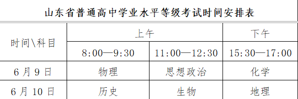 (二)普通高中学业水平等级考试。普通高中学业水平等级考试由我省自主命题,考生从思想政治、历史、地理、物理、化学、生物等6个科目中选报3科参加考试。考试时间安排在6月9日—10日,每科考试时间为90分钟。