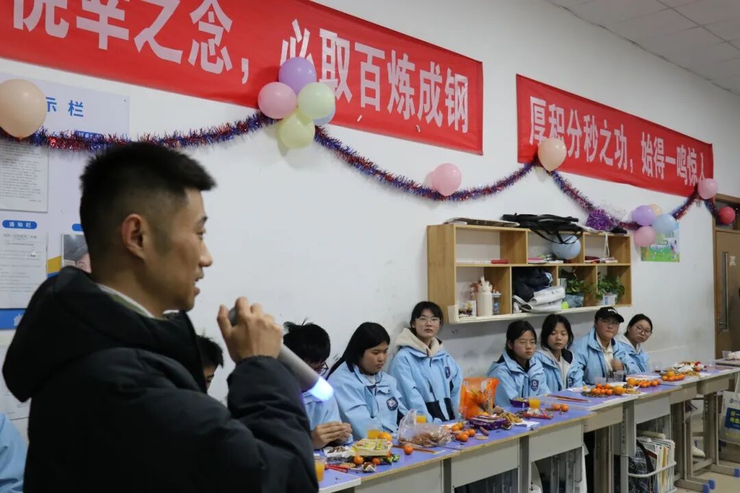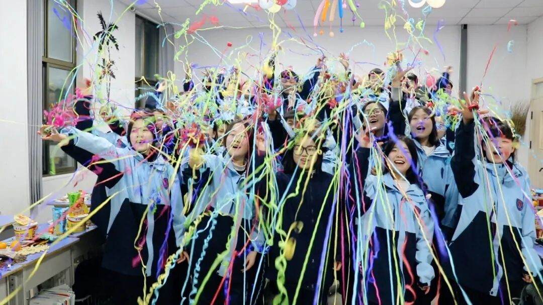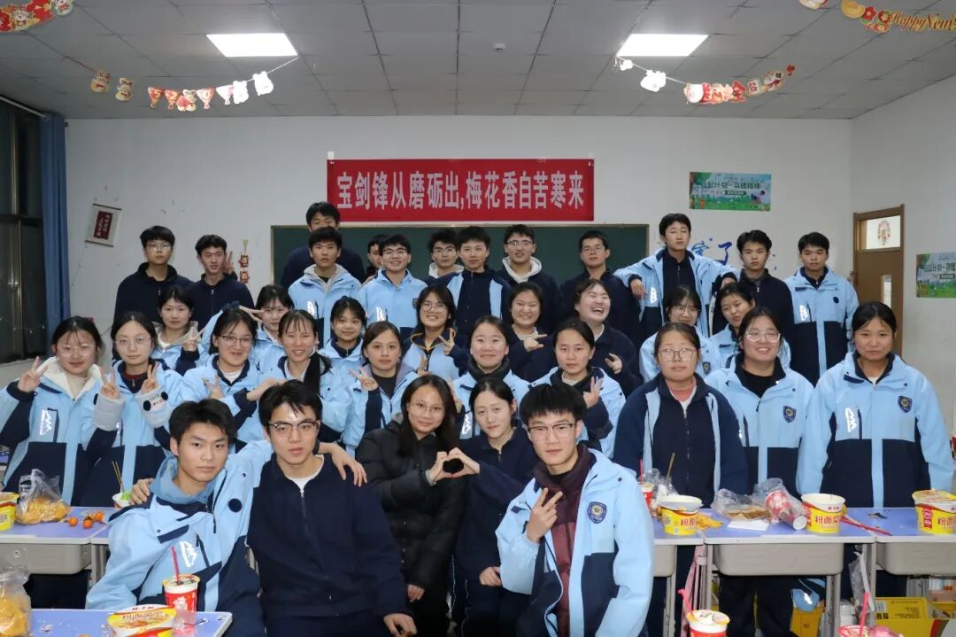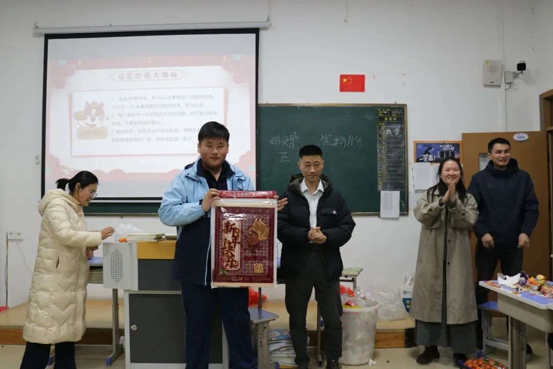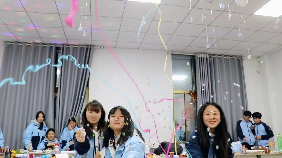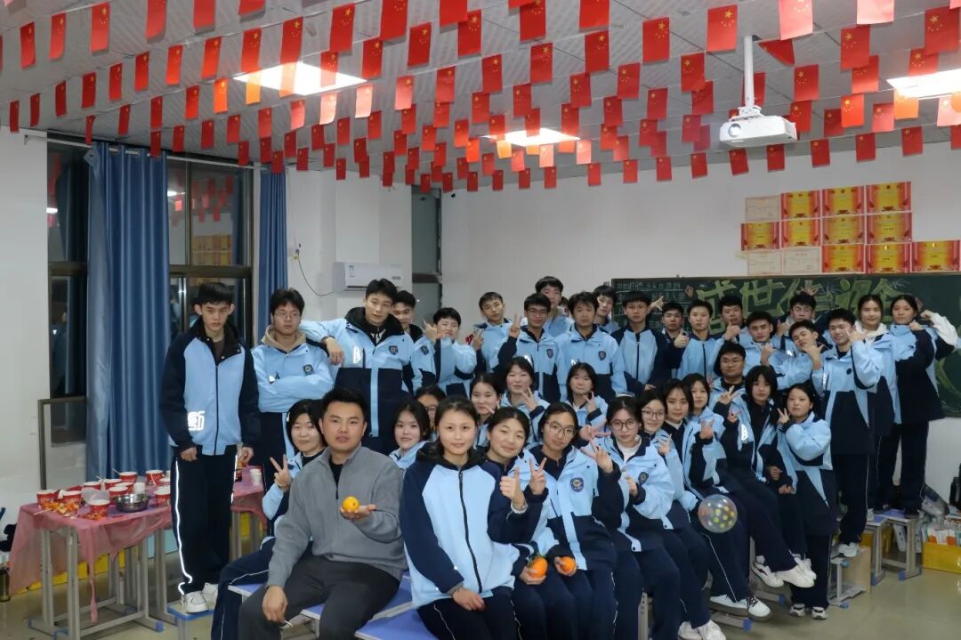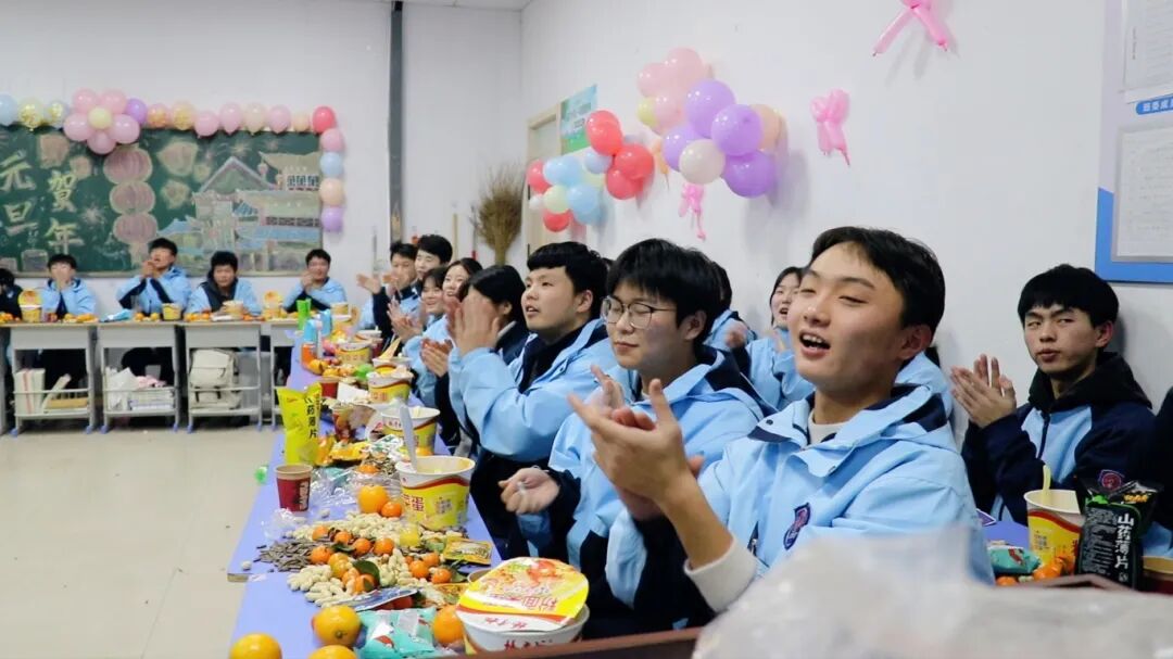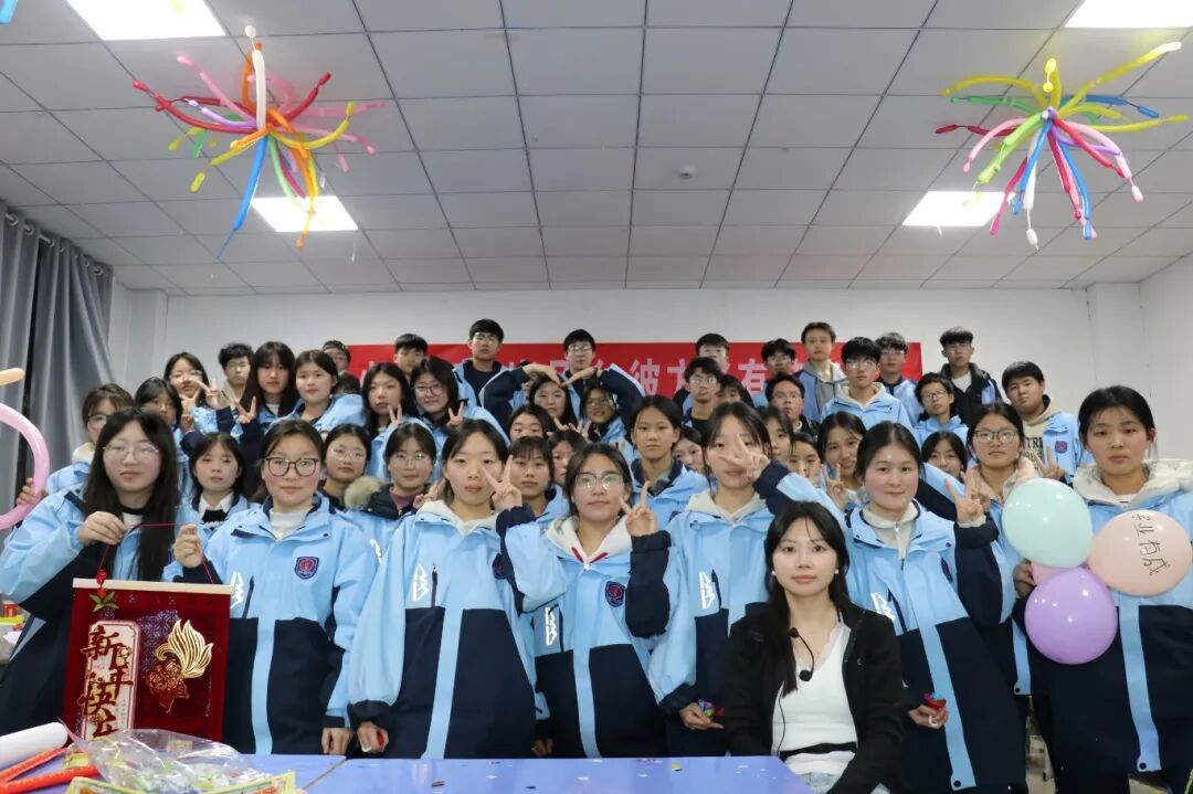 夜幕降临,平日整齐严肃的教室变身为五彩缤纷的联欢舞台。彩带、气球、窗花点缀其间,黑板报上是同学们亲手绘制的“你好,2026”。简单的装饰,承载着大家对新年最真挚的期待。